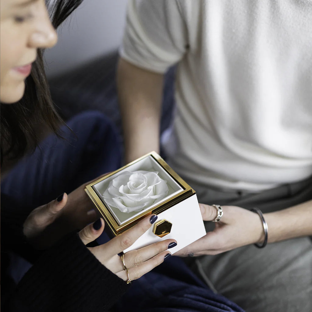 Każda róża została stworzona tak, aby być trwałym symbolem miłości — ponadczasowym, eleganckim i łatwym w pielęgnacji.